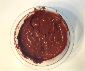 - Place the peanut butter (nut butter) in the bottom of the bowl and pour chocolate chips on top – this will prevent the chocolate from burning. Microwave in 30-second increments, stirring until melted. (Double boiler can be used in place of microwave).
