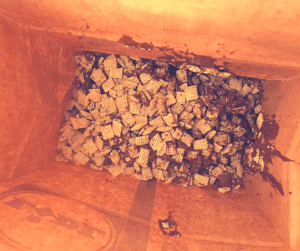 Start with a large (clean) garbage bag or paper bag and pour the rice cereal into bag. Next, melt the chocolate and peanut butter together in a bowl and stir to a smooth consistency.