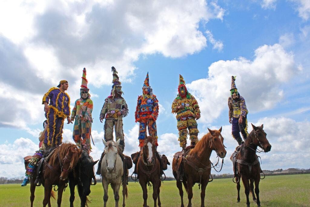 Cajuns celebrate Carnival Season in many unique ways, but for me, it’s all about the Courir de Mardi Gras, or the Fat Tuesday Run. Led by the Capitaine, this traditional run begins on Lundi Gras (the Monday before Mardi Gras) and features masked and costumed participants, mostly on horseback and some on foot, visiting house to house to house to gather ingredients for a delicious gumbo. The revelers dance and sing for homeowners in exchange for the essential ingredients to make this mouthwatering dish, including chicken stock, the “holy trinity” (celery, bell peppers, and onions), roux, and a chicken—caught and chased rather than purchased from the store.