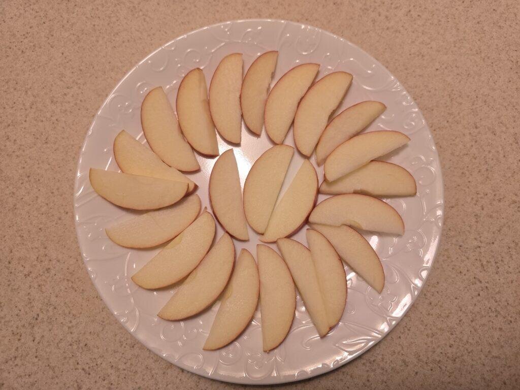 - Wash, core, and slice your apple into thin slices, then spread them out on a plate
