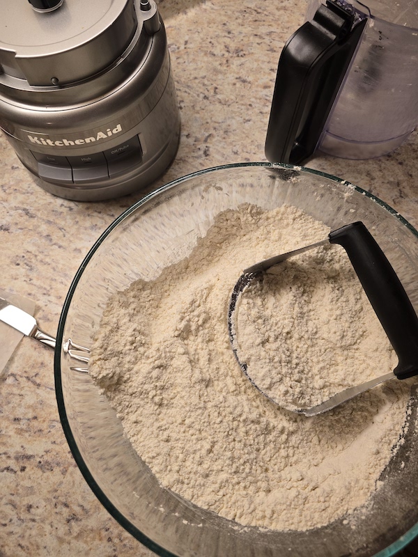3. Add the cold butter and cut it into the flour mixture using a pastry blender until the mixture resembles coarse meal. (TIP: I use a box grater or food processor to grate my frozen butter into the flour mixture, that way it is evenly distributed, and makes a more flaky scone!)