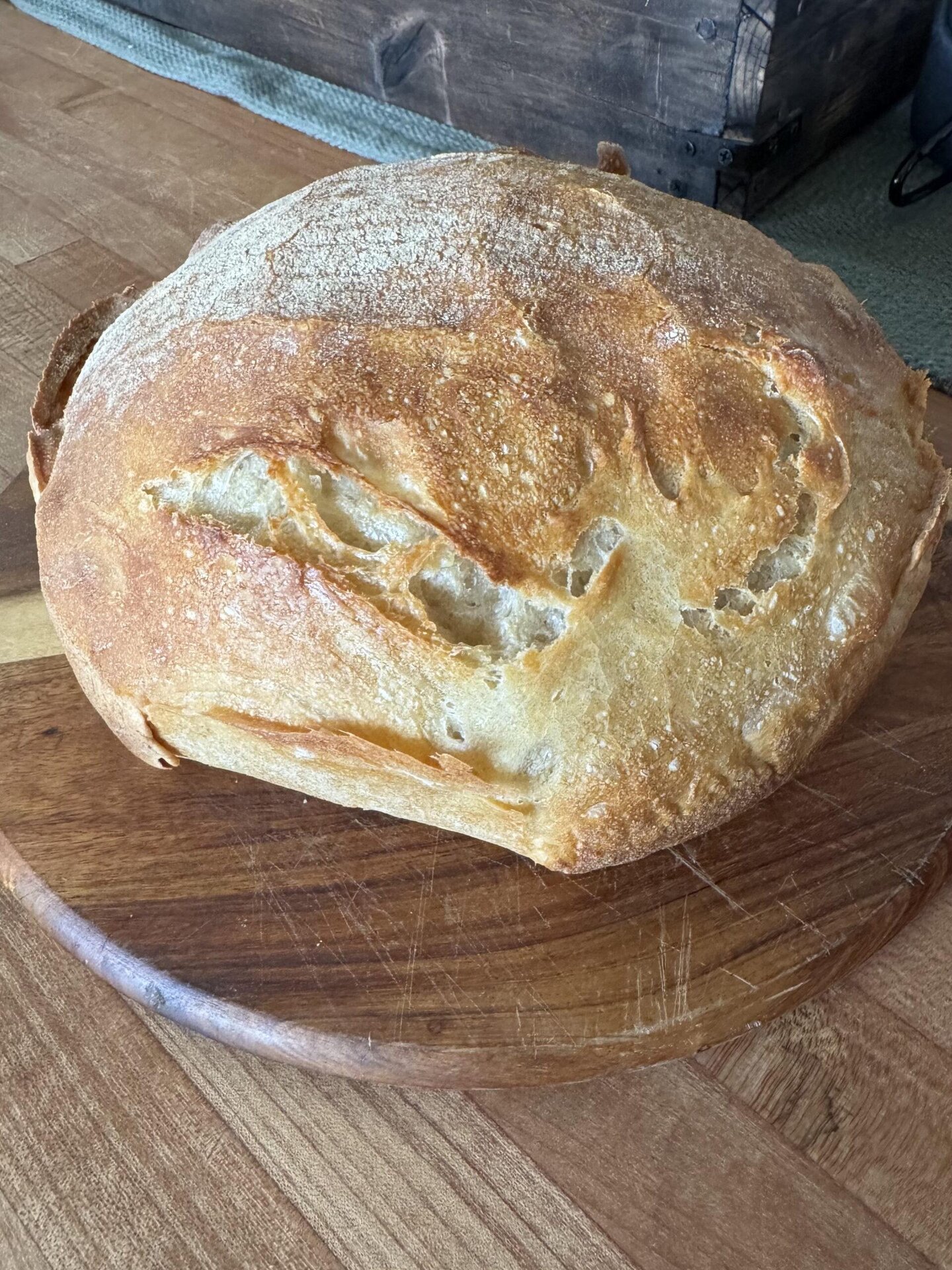 Where are my sourdough sisters? You have your starter ready and you’re not sure what to do. Try this easy “NO Knead” sourdough bread recipe. As King Arthur Baking states: “characterized by its crusty, chewy texture, robust sourdough flavor, and rich golden color, this no-knead sourdough bread has become a favorite in our Test Kitchen. It relies entirely on its starter for leavening; but with an active, bubbly starter, a little bit of patience, and minimal effort (no kneading!), you’ll be amazed by this stunning, delicious loaf.” I couldn’t have said it any better! Thank You King Arthur for the base of this recipe, but I have made a few changes or additions of my own.