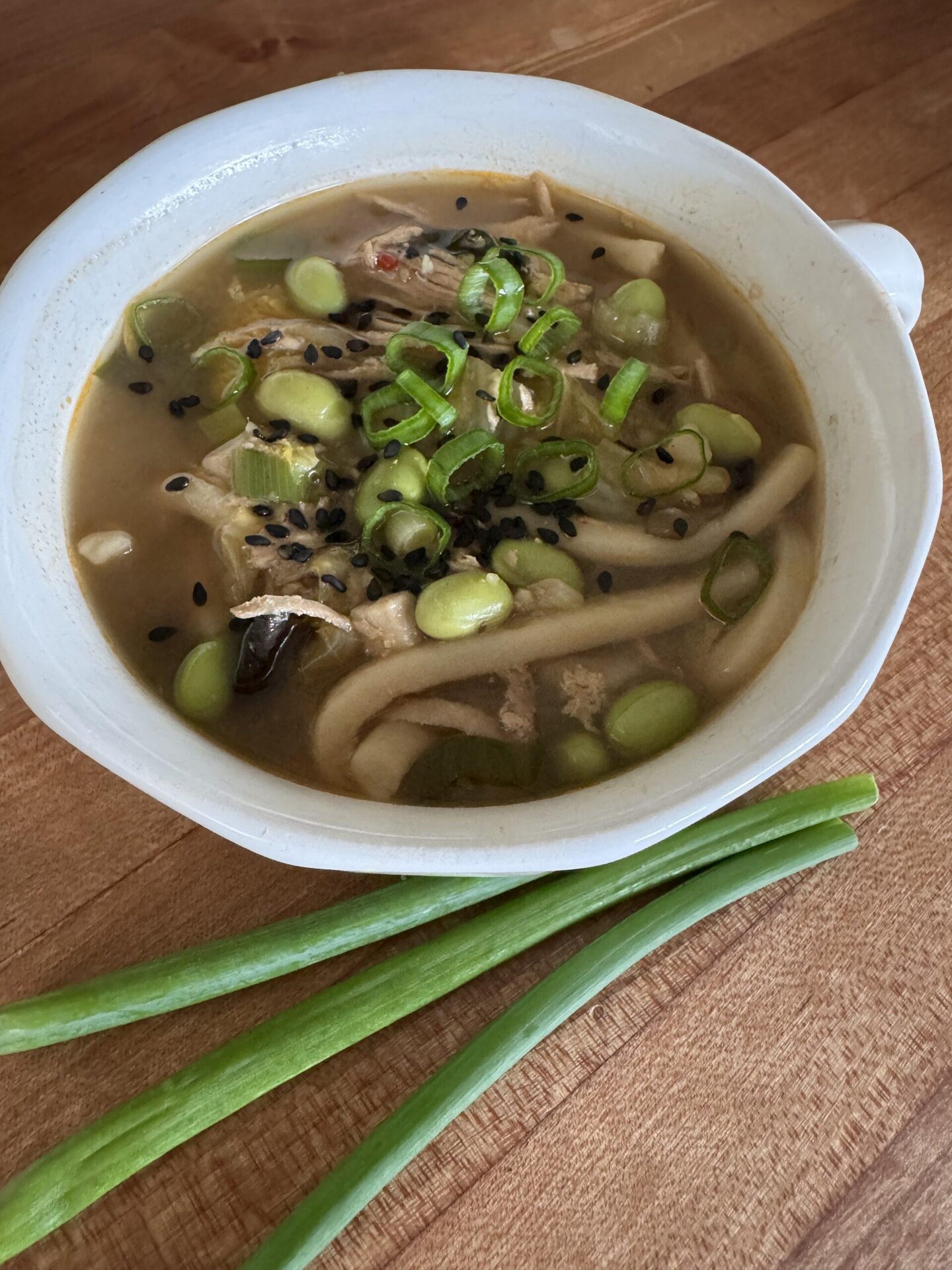 Other: This is a quick soup to make. You can substitute kale or spinach for your cabbage. Go meatless with veggie stock. Can’t find udon noodles, try ramen, egg or rice noodles (follow cooking instructions on the back). I found Miso paste and Sriracha in the international or Asian section of our grocery store. If you like a little more heat, add as much Sriracha as you would like.