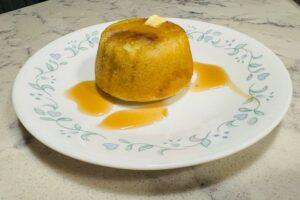 Remove from oven and add toppings: butter, cinnamon sugar, syrup.