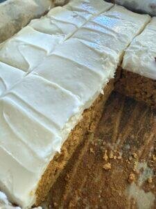 - Spread the frosting on top of the cooled bars. Enjoy!