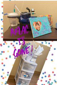 When the trach was gone I started getting rid of everything as quickly as I could manage it. I stuffed all the trach supplies from all around my side of the room into the rolling cart they had brought in and pushed it to where they would know to take it out. I learned to transfer from bed to wheelchair and from wheelchair to the handicap seat on the toilet and I pulled the potty chair from the end of my bed to the hallway for them to take away.