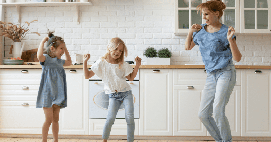 Nothing gets me feeling sunshine faster than music. I put on some 80s music LOUD and start dancing around my kitchen and sunshine comes out, metaphorically. My kids start laughing at my crazy dance moves and soon they’re dancing with me. I grab something silly as a microphone and begin my karaoke. Spotify has great themed playlists and my particular favorite is one called Mood Booster. My kids love most of the music and I get a break from Encanto that’s on repeat.